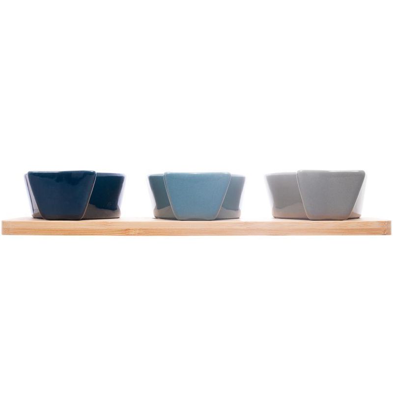 3 Petisqueiras com Bandeja de Bambu 25x12x4,5cm - Lyor