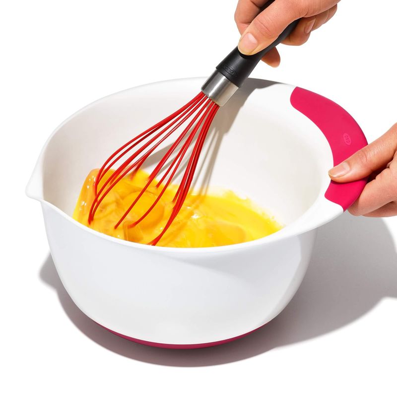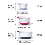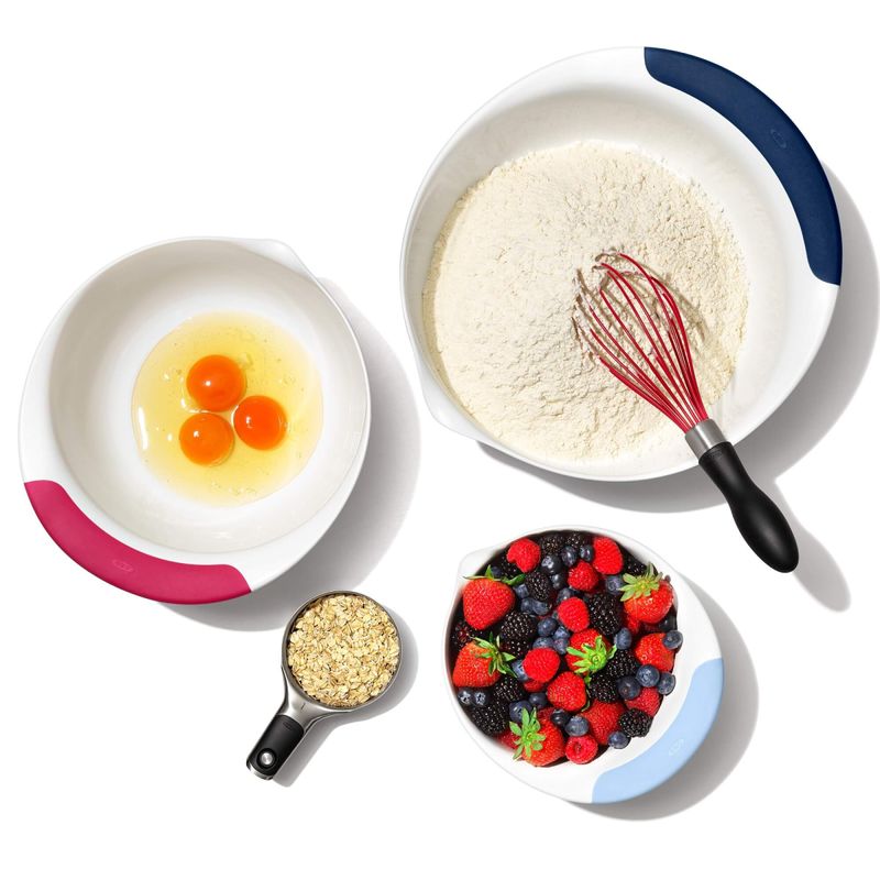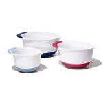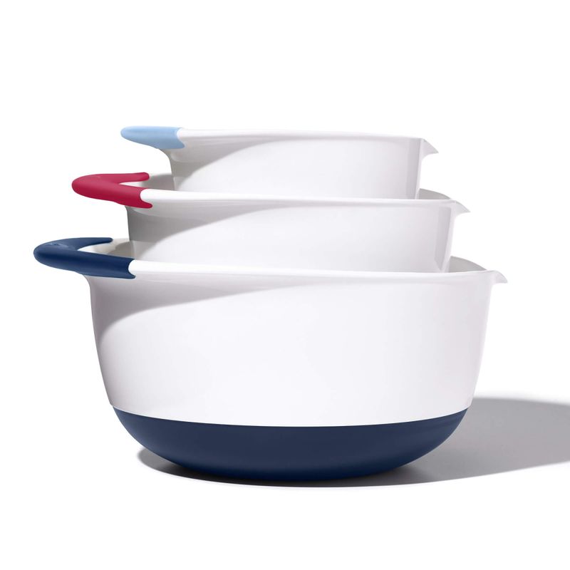 O OXO Good Grips Mixing Bowl Set ajuda você a enfrentar qualquer projeto culinário, desde bater ovos até misturar massa de cupcake e fazer marinada. As tigelas de 1,4 litros, 2,8 litros e 4,7 litros apresentam alças macias e antiderrapantes.