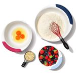 Os fundos antiderrapantes estabilizam as tigelas em qualquer superfície da cozinha, mesmo em ângulo. Os bicos facilitam o derramamento de ingredientes. Além disso, as tigelas se aninham perfeitamente para um armazenamento conveniente Livre de BPA e lavável na lava louças.