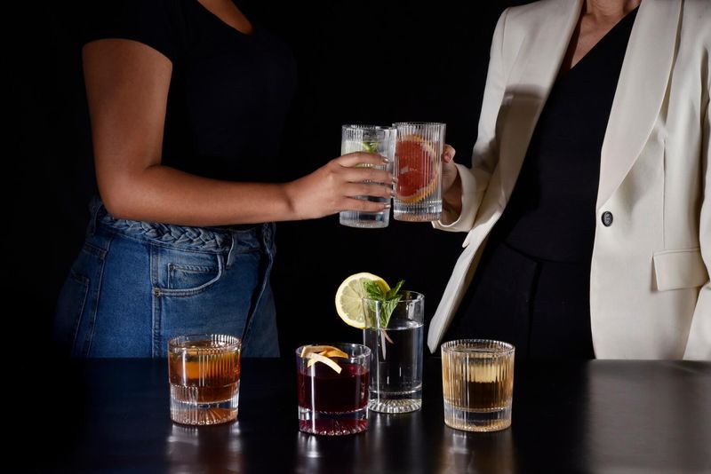 Design sofisticado e elegante com textura canelada que reflete a luz de forma sofisticada, tornando-o uma peça de destaque na mesa ou no bar. Material de Feito de vidro grosso e resistente, oferece durabilidade e segurança, reduzindo o risco de quebras e lascas.