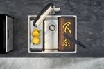 - A TABUA DE CORTE e o CESTO ESCORREDOR foram desenvolvidos para o perfeito encaixe nas cubas Franke BOX e ONYX (410mm).