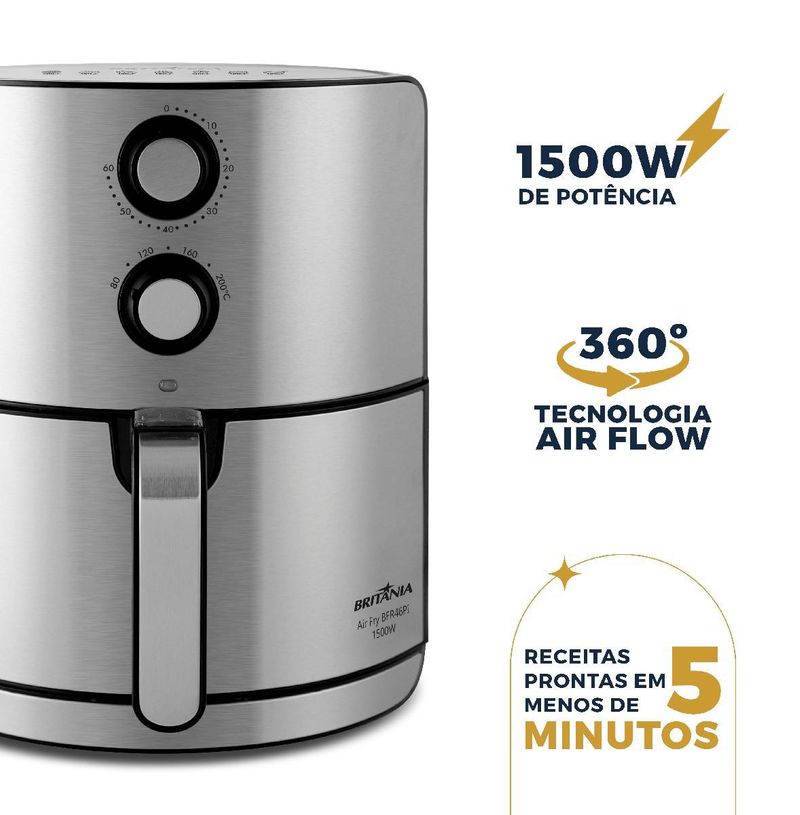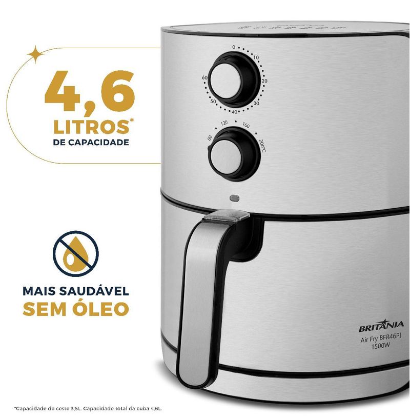 Sua melhor aliada na cozinha, a Air Fryer Britânia 4,6L Antiaderente 1500W BFR46PI!
