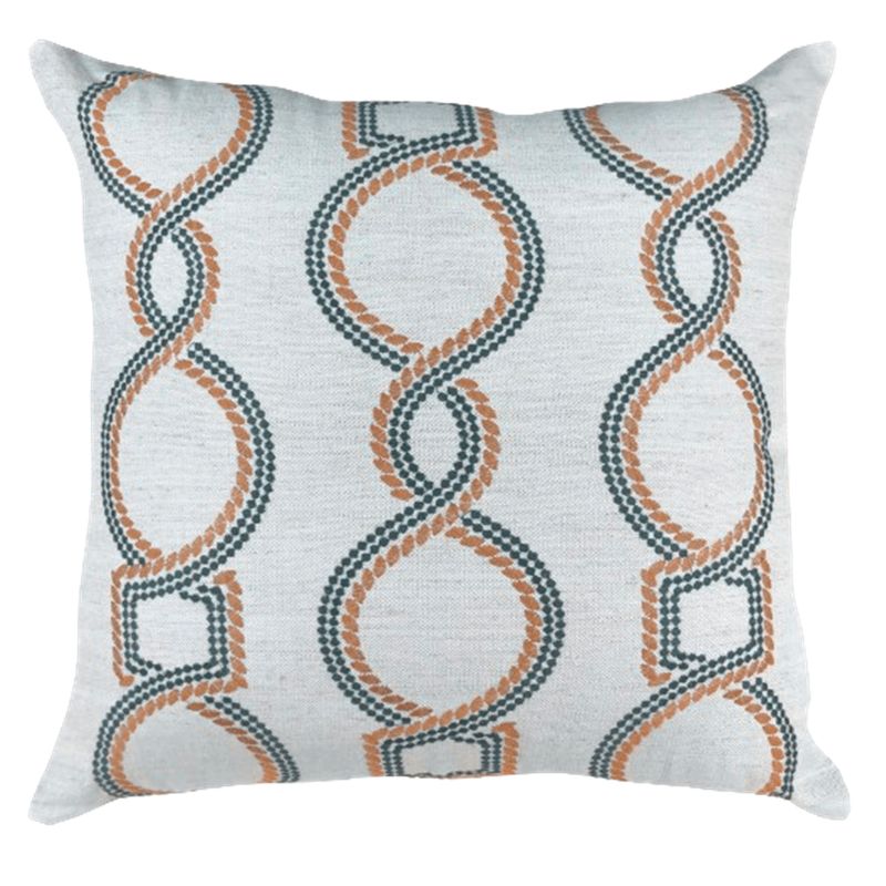 Almofada de Linho Cru com Bordado Fino Ocre e Verde 52cm - Decortextil