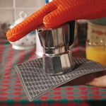 Suporte apoio em silicone da Silikomart é ideal para proteger suas mãos de tocar em pratos quentes, panelas e frigideiras. Também pode ser usado como aparador de panelas e pratos quentes.