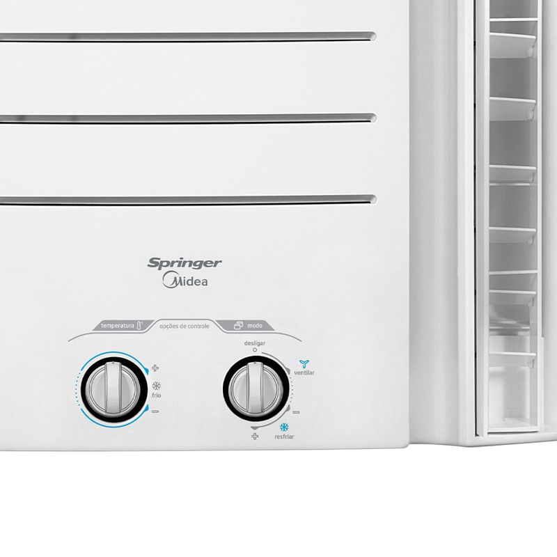 O ar-condicionado de janela Springer Midea Mecânico utiliza fluido refrigerante ecológico R-410A, atóxico, não inflamável e não agride a Camada de Ozônio. Possui sistema de renovação de ar, permitindo a troca do ar dissipando fumaças e odores do ambiente. Conta com selo A de eficiência energética nas capacidades de 7.500 BTU/h. Classificação A de energia nos modelos de 7.500 BTU/h. Fluido Refrigerante Ecológico R410-A que é atóxico, não inflamável e não agride a camada de ozônio. Serpentina em cobre. Sistema de renovação de ar: Deixa o ar mais puro e saudável. Duas velocidades: baixa e alta + modo ventilação. O fluxo de ar pode ser direcionado para quatro direções através dos defletores direcionadores móveis. Potência declarada baseada no teste obrigatório (outdoor 35ºC) da norma ISO 16358-1 para produtos de vazão fixa de refrigerante. ATENÇÃO: ESTA LOJA NÃO FATURA PARA CNPJ.