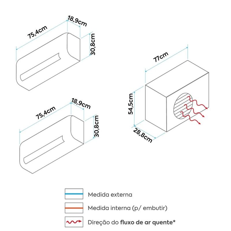Capacidade (mínima, nominal, máxima): 5,400 ~ 18,000 ~ 20,400 BTUs