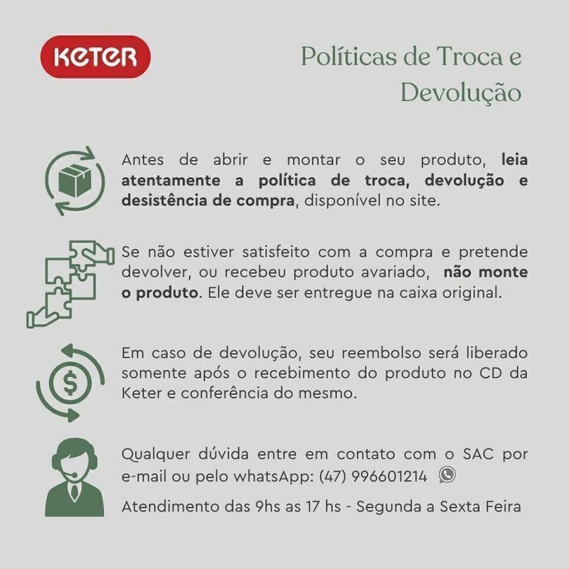 O armário alto Quadra da Keter, confeccionado em material sintético resistente, tem um visual moderno e minimalista. Com alças robustas e três prateleiras ajustáveis que podem suportar até 10kg de peso cada, este móvel oferece uma solução prática de arrumação para qualquer espaço, seja ele na sua casa, trabalho, loja, assim como outros ambientes profissionais. Além disso, os móveis são fáceis de montar e manter.