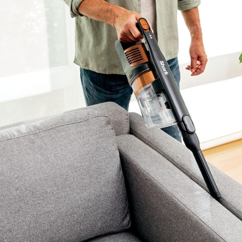 O aspirador vertical sem fio Shark® Pet Pro combina sucção potente e uma escova auto limpante com PowerFins™ para limpar pisos e carpetes sem emaranhar pelos.