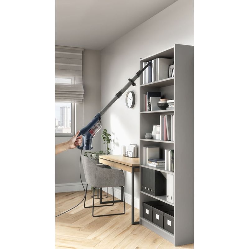 Tecnologias do Aspirador de Pó Vertical 3 em 1 O Aspirador de Pó Vertical 3 em 1 possui diversas tecnologias que tornam seu funcionamento mais potente e eficiente. Confira! Filtro HEPA Allergy Protect: proteção para devolver ao ambiente um ar limpo e saudável, já que é eficiente contra bactérias, fungos e ácaros; Cyclonic Power Technology: oferece uma filtragem do ar em etapas, garantindo a separação inteligente de partículas, sendo eficiente para reter desde partículas maiores quanto as micropartículas; Bocal extensor: para as áreas difíceis, esse modelo Electrolux oferece um bocal que alcança o teto e até embaixo de móveis com facilidade; Bocal para piso frio: acessório que limpa e conserva pisos frios, porcelanatos e cerâmicas;Escova para superfícies delicadas: aspirador de mão com ajuste para limpeza eficaz e suave, que não danifica superfícies.
