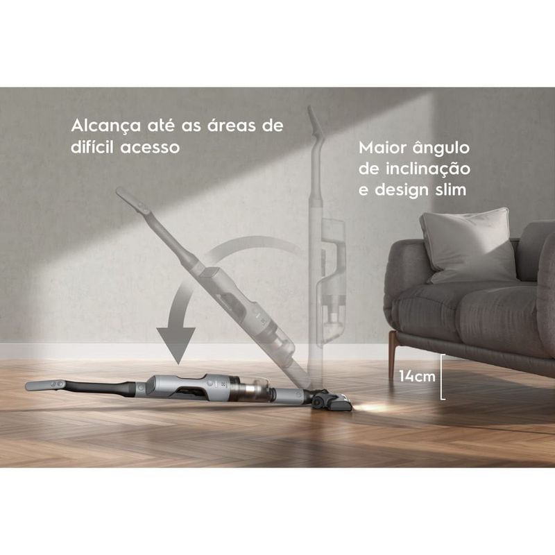 Aspirador de Pó Vertical Sem Fio Electrolux ERG018 Cyclonic Power - Potência e liberdade para sua rotina de limpeza! Com tecnologia Cyclonic Power, oferece alta performance de sucção, filtragem em múltiplas etapas e devolve ao ambiente um ar mais puro.Versátil e moderno, é um aspirador 2 em 1: utilize-o como vertical para pisos e tapetes ou como portátil de mão para mesas, móveis e outras superfícies. Seu bocal slim com escova rotativa possui luz LED que ajuda a identificar até as menores partículas, incluindo pelos de animais. O aspirador é sem fio, com bateria de lítio, com autonomia de até 30 minutos, com liberdade de movimento para aspirar toda a casa. O sistema 180° EasySteer e a inclinação total facilitam o alcance em cantos e áreas de difícil acesso, como embaixo de móveis. O filtro HEPA, aliado aos demais filtros (sólidos, metálico e espuma), garante retenção de micropartículas, fungos e ácaros, garantindo uma limpeza mais eficiente e mais saudável. Além disso, o reservatório de 950ml é fácil de remover e limpar, tornando o processo ainda mais prático. Descubra mais produtos Electrolux e garanta mais praticidade e agilidade nas atividades da sua rotina!
