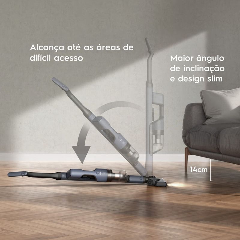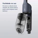O Aspirador de Pó Vertical Sem Fio Electrolux Ergorapido 2 em 1 Efficient Cyclonic Power (ERG019) proporciona uma limpeza eficiente e prática dos ambientes, já que seu formato fino e ergonômico alcança até espaços de difícil acesso. Sua tecnologia Cyclonic Power oferece alto poder de sucção, sendo capaz de filtrar o ar em etapas para reter eficientemente o pó e outras partículas e devolver ao ambiente um ar mais puro. Essa tecnologia também prolonga a durabilidade dos filtros do aspirador e os mantém eficientes por mais tempo. Conte com o design slim do bocal e uma inclinação quase total do ergorapido até o chão para uma maior liberdade de movimento; alcance áreas de difícil acesso, incluindo abaixo de móveis¹. Com a tecnologia 180° EasySteer, o bocal rotaciona para as laterais, facilitando aspirar a sujeira de todos os cantos. Sua bateria de lítio contribui com a durabilidade do produto e oferece autonomia de até 30 min, para uma limpeza eficiente. O design sem fio oferece praticidade máxima para transportar ou manusear, e o estacionamento vertical permite que você posicione o produto verticalmente sem depender de apoio. Tenha a versatilidade de um aspirador 2 em 1. O ergorapido é ideal para limpar pisos, já que o bocal com escova rotativa aspira diferentes tipos de sujeiras e sua luz de LED facilita identificar as partículas menores, como pelos, para limpar o ambiente com precisão. Já a unidade de mão portátil é perfeita para aspirar outras superfícies, como mesas. O filtro Hepa elimina micropartículas e é eficiente contra alergênicos aspirados pelo ergorapido, como fungos e ácaros.