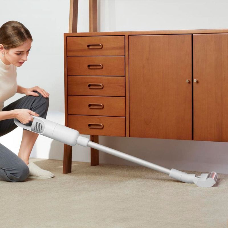 Aspirador 2 em 1 que pode ser utilizado no formato vertical ou portátil. Possui até 45 minutos de autonomia no modo normal e até 13 minutos no modo turbo. Seu design super leve, com corpo principal de apenas 1,2 kg, garante conforto no uso em áreas elevadas como cortinas e tetos. Compatível com todos os tipos de superfícies, como tapetes, pisos laminados, madeira e pisos frios, é ideal para a limpeza completa de apartamentos médios.