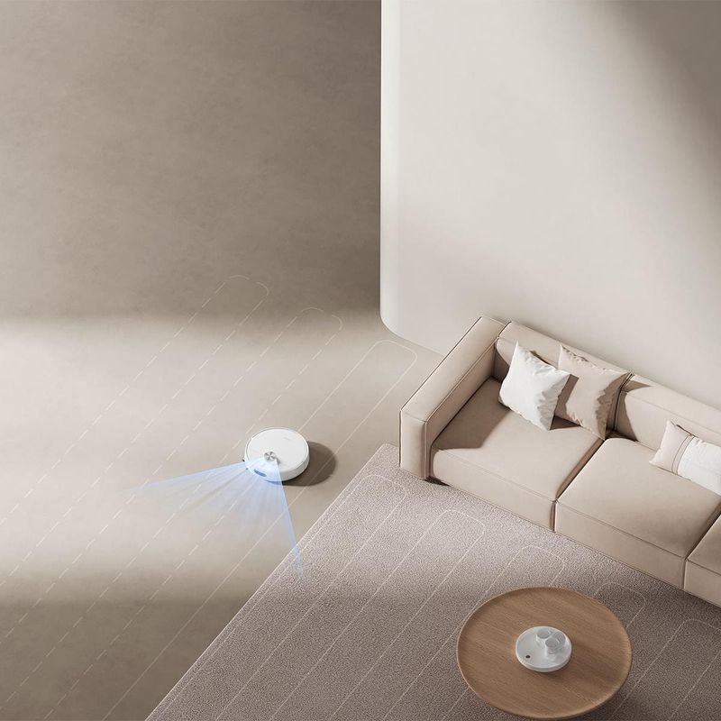 Equipado com bateria de 5200mAh, o robô proporciona até 180 minutos de limpeza contínua, ideal para grandes áreas, retornando automaticamente à base quando necessário.
