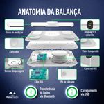 Carregar a balança é fácil e prático, devido ao carregamento via USB. Com a