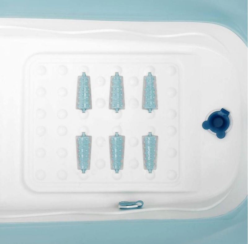 Design Dobrável e Maleável: A banheira é dobrável e resistente, permitindo fácil armazenamento. Basta empurrar para baixo para usar e dobrar para guardar.