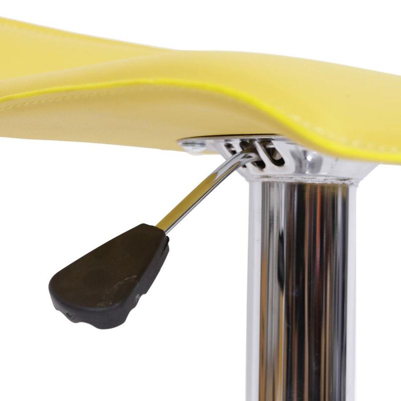 Banqueta Wave Estofada Amarela Cromada é composto de Assento em PU com ajuste de altura, giratória e base em metal. Seu Altura do chão ao encosto64 a 79cm Altura do chão ao assento 57 a 78,5cm Largura 39cm Comprimento 40cm