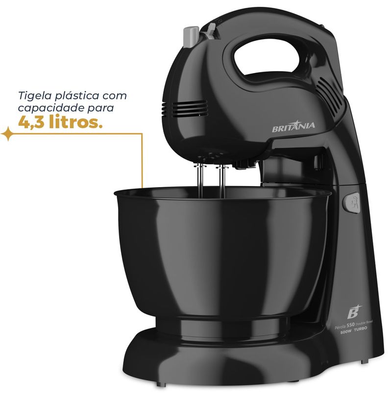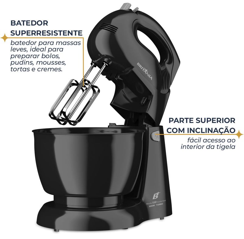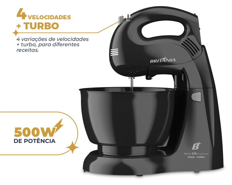 Tenha uma cozinha mais completa com a Batedeira Britânia 500W 4 velocidades Pérola 550 Double Bowl!