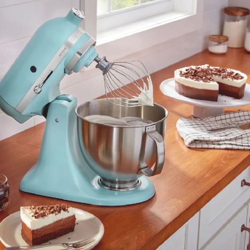 Seu corpo de metal e motor de ferro fundido tem a força necessária para bater com alta performance e eficiência até as massas mais pesadas sem balançar na bancada. Referência de design, resistência e durabilidade fazem da Batedeira Artisan sua melhor companheira do dia a dia na cozinha. A tigela em aço inox possui capacidade para 4.83L, podendo bater até 1.1kg de farinha, o que equivale a preparar até 30 cookies de 35g de uma só vez, ou 1.8kg de massa de pão, que rende 4 pães caseiros de 450g.