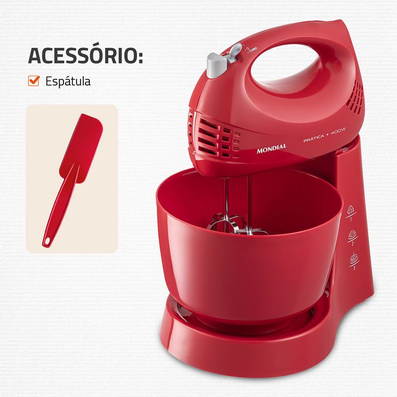 Prepare receitas em dobro com a Batedeira Prática B-45-R Mondial. Com 400W de potência, 3 velocidades para controlar o ponto das receitas e função turbo para aumentar o desempenho, ela é ideal para praticar a criatividade na cozinha. Vem com 2 tigelas: uma maior de 3,6 litros e uma menor de 2,3 litros. Conta com batedores em aço cromado, que são mais resistentes e deixam a massa no ponto certo. Saiba mais sobre a B-45-R da Mondial: