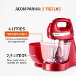 Para o sucesso de suas receitas, nada melhor do que aparelhos que facilitam sua vida na cozinha e no preparo rápido e prático de suas refeições. A Batedeira Mondial Premium Bella Massa Inox Red B-29 NP vem com 4 velocidades mais a Função Turbo, para você fazer vários tipos de receitas sem dificuldade com seus 500W de potência, deixando os ingredientes facilmente misturados. Bonita, com design moderno e na cor vermelha, deixará sua cozinha mais elegante e equipada. Seus batedores são resistentes e de aço cromado. Versátil, vem com duas tigelas com capacidade para 4 ou 2,3 litros uma delas é transparente, possibilitando a visualização da receita durante o preparo, além da praticidade de poder fazer diferentes etapas de suas receita ao mesmo tempo, usando recipientes diferentes. Fácil de manusear, a base possui roldanas que permitem que o aparelho fique firme em superfícies, proporcionando mais segurança. Para facilitar suas receitas, acompanha copo medidor e espátula para acertar na medida e quantidade de ingredientes. A Mondial equipa e deixa sua cozinha ainda mais charmosa!