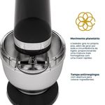 A tampa antirrespingo proporciona mais limpeza à bancada, enquanto a base antiderrapante com porta-fio oferece estabilidade e organização.