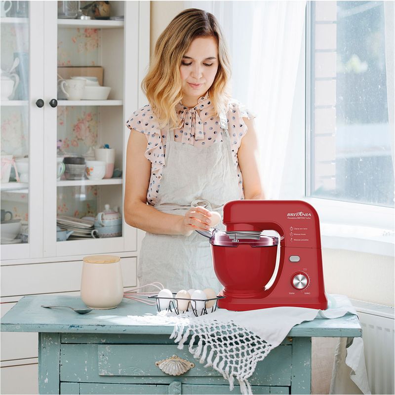 Descubra como a vida na sua cozinha pode ser mais simples com a Batedeira Planetária Britânia BBP700V Turbo Vermelho 700W 4L.