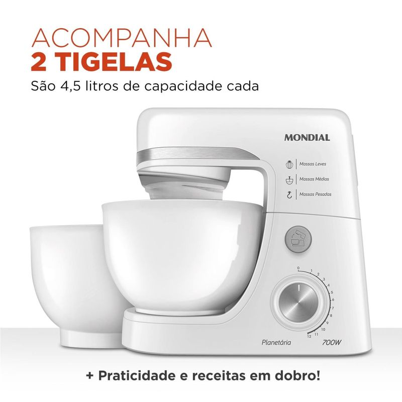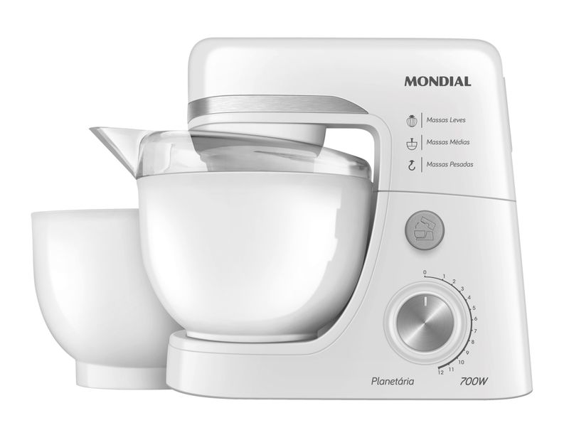 Descubra a potência e a elegância da Batedeira Planetária Mondial BP-03W-2B, perfeita para quem ama cozinhar com praticidade e alto desempenho. Com 700W de potência, ela é ideal para preparar desde bolos fofinhos até massas pesadas, como pães e pizzas.