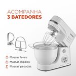 Seu sistema de batimento planetário mistura os ingredientes de forma homogênea e rápida, girando ao redor de si e da tigela ao mesmo tempo. Isso garante receitas mais bem preparadas e com textura perfeita.