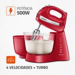 POTÊNCIA DE 500W: Proporciona a força necessária para bater de claras em neve até massas de bolo. Garantia de uma consistência perfeita!
