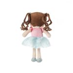 Com um toque aveludado e olhos fechados, a boneca acalma e acompanha os pequenos em seus momentos de diversão e descanso."