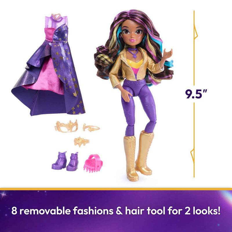 Celebre a magia das Fadas do Destino com a boneca Sophia, inspirada no baile de máscaras da Academia Unicórnio. Esta boneca fashion de 24cm traz Sophia à vida, com detalhes autênticos e 9 pontos de articulação para recriar suas cenas favoritas. Sophia vem com suas roupas de montaria removíveis, incluindo jaqueta, botas e colar. Troque-as por um deslumbrante vestido de baile e acessórios para variar o estilo. Explore diversas opções de penteados com a ferramenta de cabelo e a presilha, conforme visto no episódio do baile de máscaras da série. Complete o visual com um vestido assimétrico, máscara, cinto dourado e botinhas roxas. Deixe a imaginação fluir enquanto brinca com Sophia e recria as aventuras do universo encantado da Academia Unicórnio.