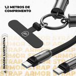 O grande diferencial do cabo está em seu design multifuncional. Ele é um cordão de poliéster premium, altamente resistente a torções, puxões e desgastes do uso diário, que permite que você transporte seu smartphone no pescoço ou no ombro de maneira confortável, ideal para quem precisa manter o aparelho sempre por perto, como em eventos, caminhadas ou situações em que as mãos precisam estar livres.
