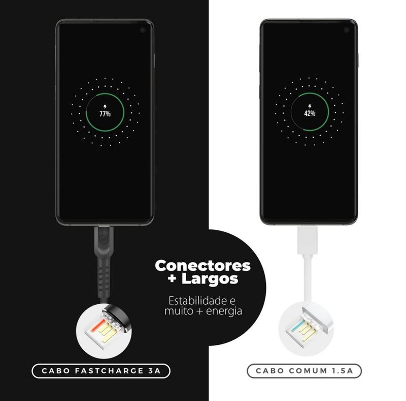 O cabo Dual Shock, da Gorila Shield, possui 1,2m de cabo revestido em PVC reforçado, proporcionando mais resistência e maior durabilidade ao acessório. Para quem possui aparelhos com a tecnologia Qualcomm 3.0, o Dual Shock é compatível. Para guardar o cabo de uma forma mais segura, prenda o acessório com a presilha Smart Arrange.