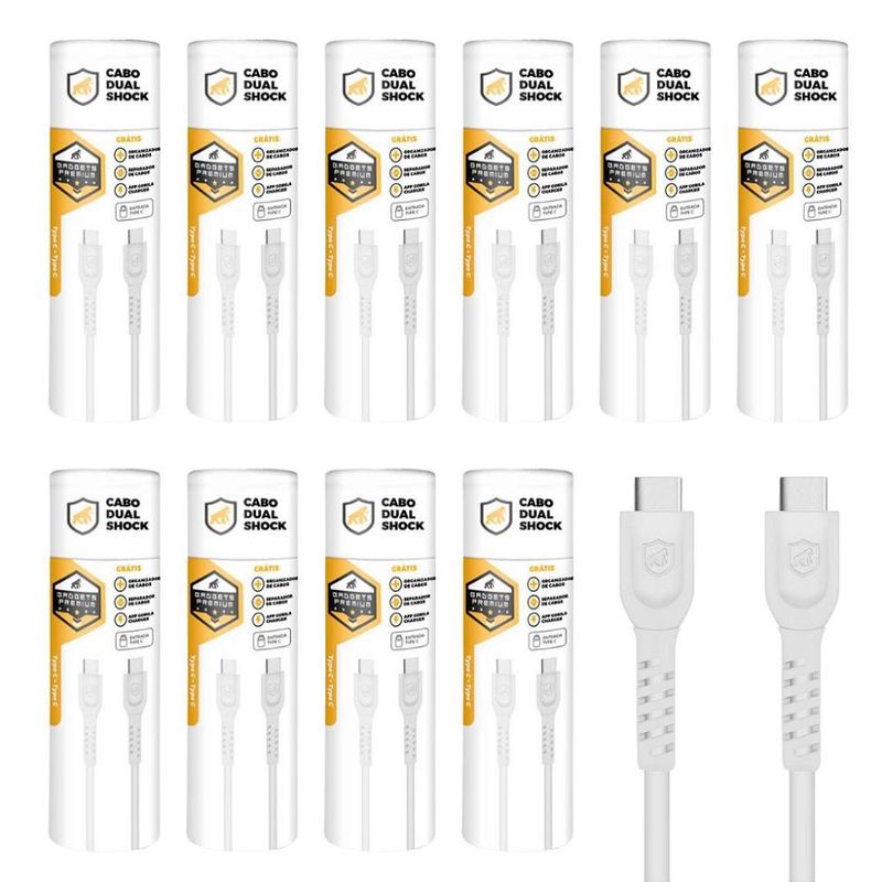 Cabo Dual Shock Tipo C / Type C - Branco - 1,2m - no Atacado - Caixa Fechada 10 Unidades - Gshield