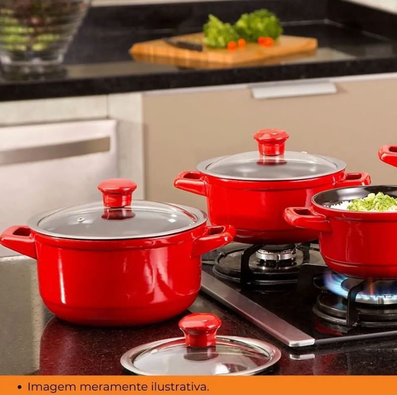 Com acabamento em vermelho vibrante e design moderno, une funcionalidade e elegância, permitindo servir diretamente à mesa com charme.