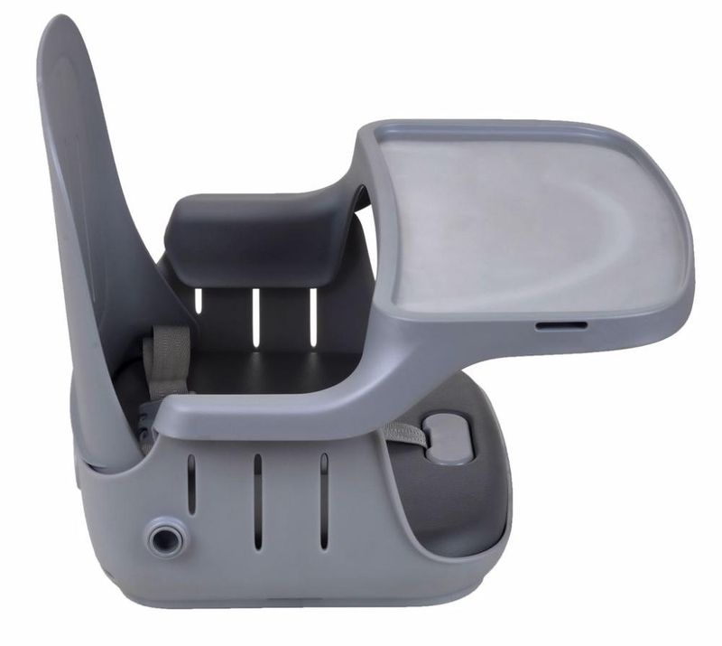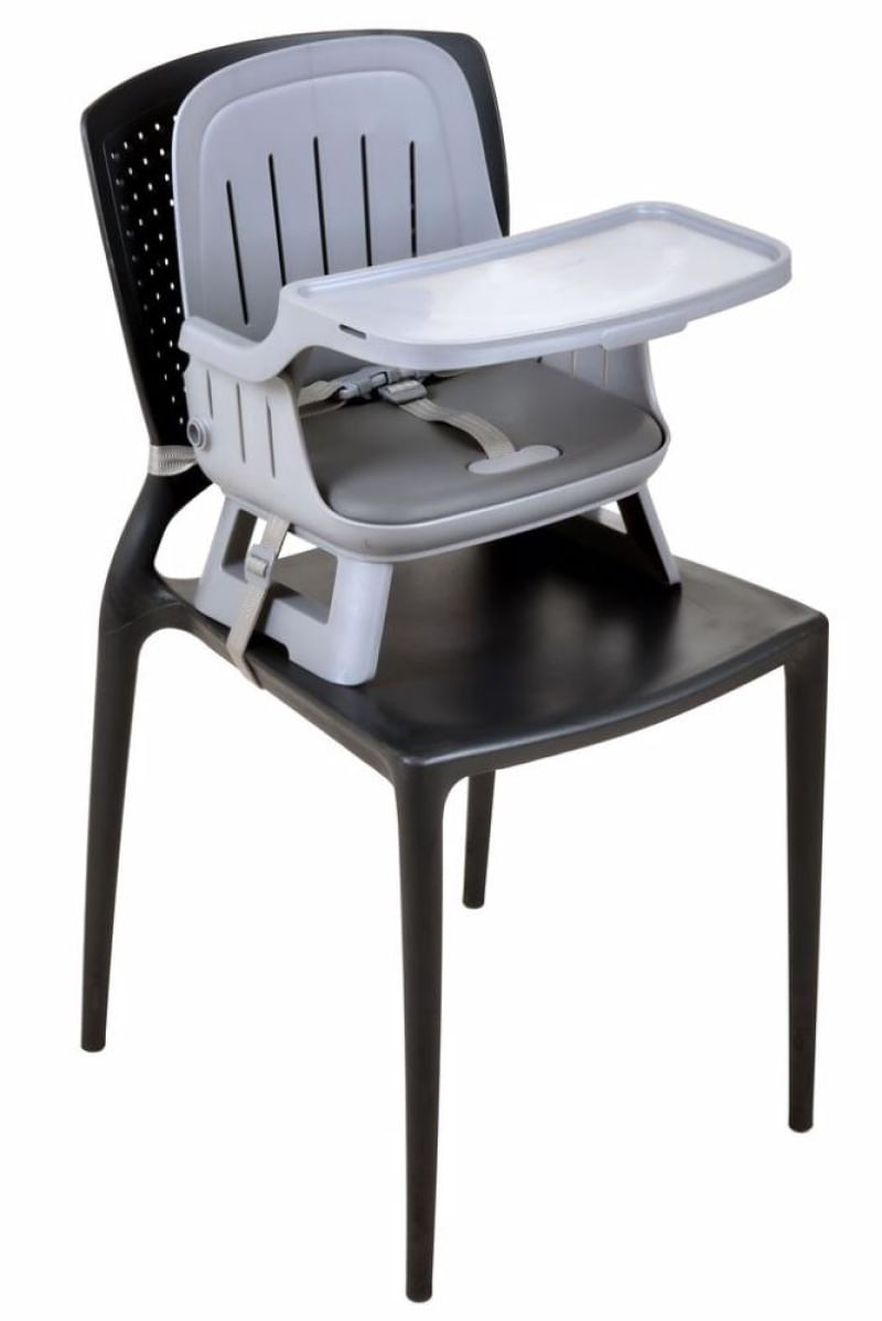 Cinto de Segurança: Equipado com um cinto de segurança de 3 pontos e um cinto adicional para fixação em cadeiras de mesa adulta, garantindo que a criança fique segura durante as refeições.