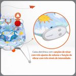 Experiência Sensorial Completa : Inclui uma barra com brinquedos interativos que estimulam as habilidades visuais e táteis, além de uma caixa de música com 8 melodias suaves e função de vibração ajustável.