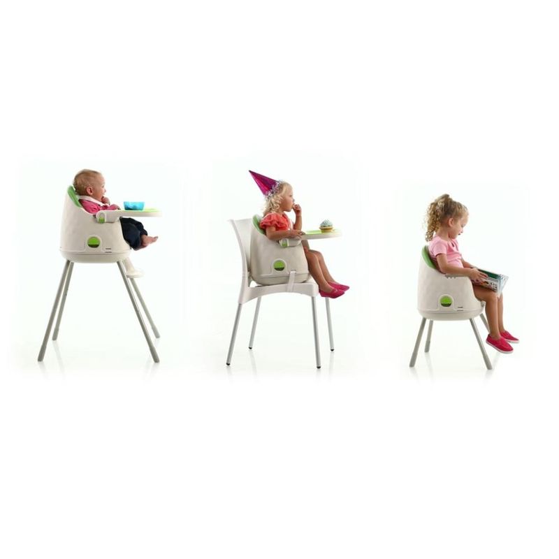3 em 1: Pode ser utilizada como cadeira alta, booster de alimentação ou cadeirinha infantil, ajustando-se ao crescimento da criança.