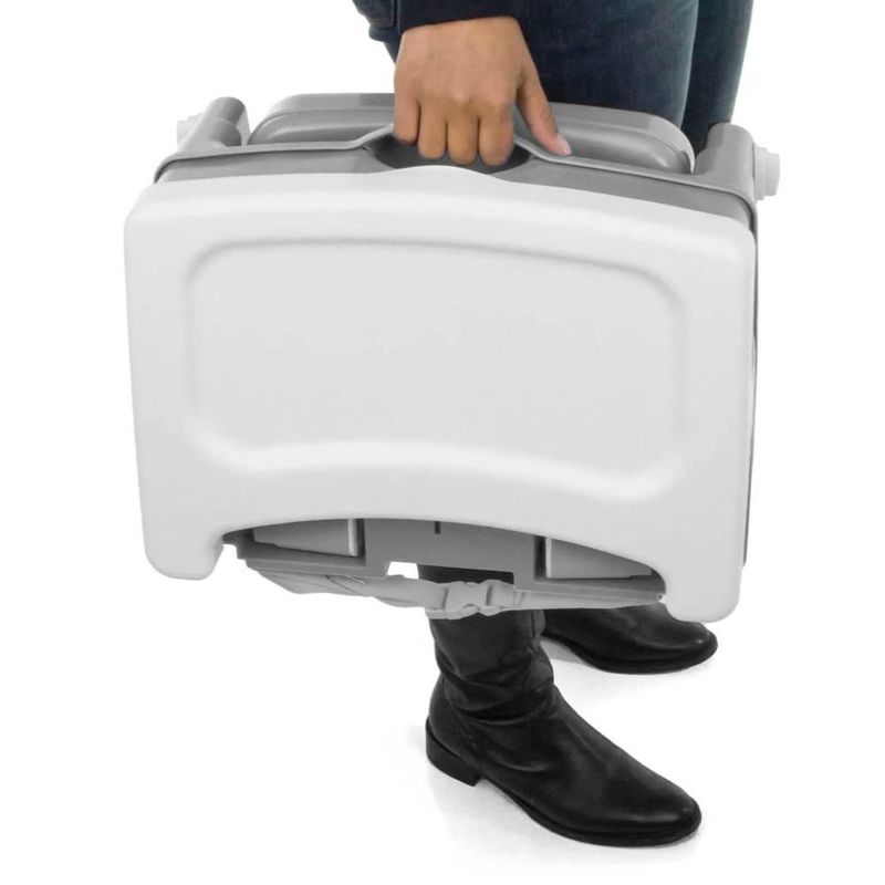 Compacta e portátil: Transforma-se em uma maleta com alça para fácil transporte.