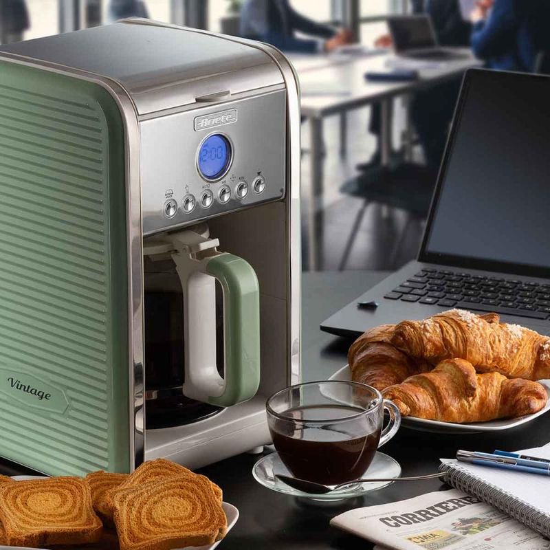 Se você tem pouco tempo para preparar seu café da manhã, a cafeteira Vintage da Ariete atenderá a todas as suas necessidades, pois pode ser programada com até 24 horas de antecedência. Você acordará de manhã com um aroma agradável de café fresco.