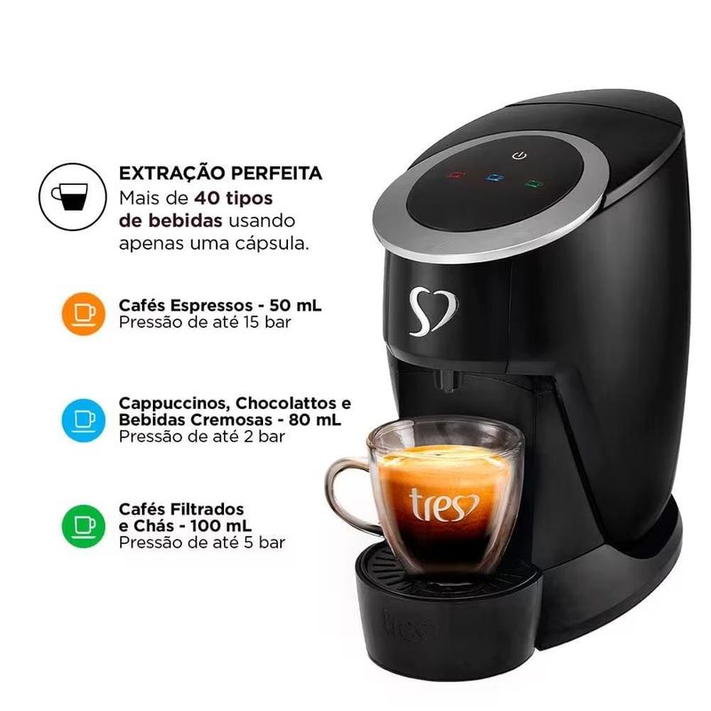 Cafeteira Espresso TRES Touch Automática Multibebidas – Preta