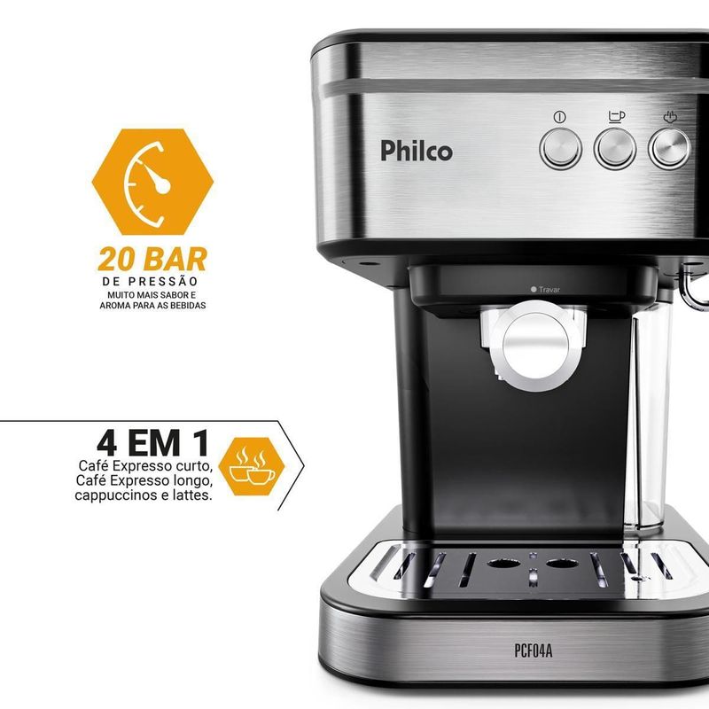 Prepare um café expresso de qualidade profissional no conforto da sua casa com a Cafeteira PCF04A da Philco. Ideal para quem busca sabor intenso e praticidade.