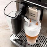 Cafeteira Philips Walita Preta Espresso Superautomática LatteGo Série 5500 1400W 220V EP5547A Cafeteira Philips Walita Espresso Superautomática LatteGo Preta Série 5500 220V 1400W oferece praticidade e sabor na preparação de cafés de qualidade. Com capacidade para até 20 bebidas quentes e geladas, ela prepara café rapidamente com o sistema LatteGo, que cria espuma cremosa em segundos. O moedor de cerâmica proporciona um sabor aprimorado, enquanto a função Extra Shot intensifica a bebida. Com a tecnologia SilentBrew, a cafeteira é até 40% mais silenciosa e a função ECO economiza energia. Peças laváveis na lava-louças facilitam a limpeza e o filtro AquaClean reduz a necessidade de descalcificação, permitindo até 5000 xícaras. Seu design moderno, display intuitivo e apoio no aplicativo HomeID oferecem personalização e conveniência. Além disso, o desligamento automático e a base antiderrapante garantem segurança e praticidade. Ideal para quem busca café de qualidade de forma rápida e sem complicação.