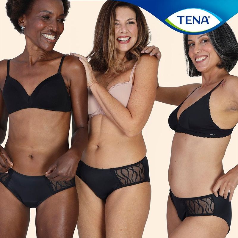 TENA Calcinha Lavável foi desenhada para mulheres com incontinência urinária leve que procuram mais conforto e discrição. É um produto feminino, tecnológico e sustentável.