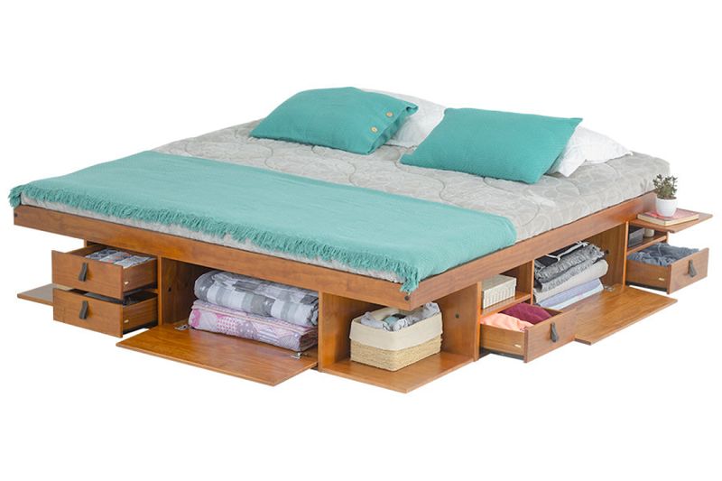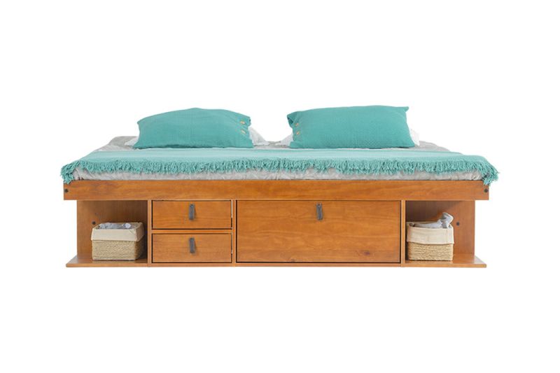 Composta de 6 gavetas, 4 nichos, 3 gavetões com porta basculante e 2 amplos nichos frontais, a Cama King Size Com Gavetas Bali - Nozes otimiza o espaço, especialmente em quartos pequenos. Suas diversas opções de armazenamento permitem que você mantenha o quarto sempre organizado e livre de bagunça. Além disso, esta cama king size é fabricada com materiais de alta qualidade, garantindo sua resistência, durabilidade e, claro, muito conforto. Esta cama com gavetas é confeccionada com madeira de pínus de floresta plantada, MDF (na parte dos fundos e traseira das gavetas e módulos) e elegantes puxadores de couro. O design elegante desta cama de madeira combina perfeitamente com diversos estilos de decoração para quarto de casal. Seja para relaxar, seja para acomodar seus pertences, esta cama king oferece tudo o que você precisa em um único móvel multifuncional. Não há dúvidas de que a Cama King Size Com Gavetas Bali - Nozes se tornará rapidamente a sua cama favorita!
