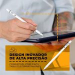 A Caneta possui um design inovador de alta precisão, com material durável e leve, sendo compatível com tablets, iPads e smartphones. E sua bateria de longa duração garante o uso contínuo da caneta por até 10 horas!