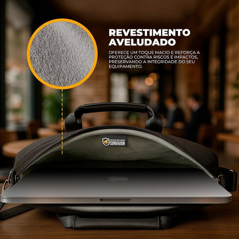 Sua estrutura externa é confeccionada em nylon poliuretano balístico, um material altamente resistente à água que ajuda a proteger contra respingos, umidade e sujeira do ambiente, mantendo o interior da capa sempre seco. Já a parte interna conta com revestimento aveludado, que oferece um toque macio e reforça a proteção contra riscos e impactos, preservando a integridade do seu equipamento. A Capa Office também conta com enchimento estratégico que atua como barreira contra batidas leves, tornando-se uma aliada indispensável em deslocamentos frequentes.