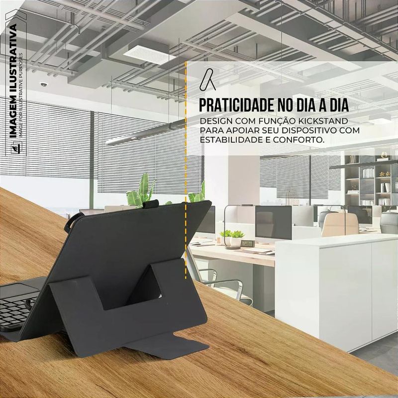 Transforme o uso do seu tablet em uma experiência completa de produtividade com a Capa Hybrid da Gshield, projetada para unir proteção, praticidade e funcionalidade em um único acessório. Compatível com TCL Tab 10S, essa capa universal se adapta com firmeza e segurança a diversos modelos, oferecendo um encaixe confiável e versátil para o seu dispositivo. Mais do que uma simples capa, a Hybrid conta com teclado Bluetooth integrado, com layout ABNT2 e teclas em ABS, que garantem uma digitação confortável, silenciosa e fluída ideal para quem estuda, trabalha ou escreve com frequência. O destaque fica por conta do touchpad responsivo, que proporciona navegação precisa sem a necessidade de um mouse, elevando a experiência de uso para o nível de um mini notebook. Com acabamento premium e superfície antiderrapante, a capa oferece proteção eficiente contra impactos e riscos, além de manter o tablet estável sobre superfícies lisas. O design inteligente inclui também suporte para caneta touch, garantindo que todos os seus acessórios estejam sempre ao alcance. Outro grande diferencial é a função kickstand, que permite apoiar o tablet em posição inclinada, oferecendo mais conforto para digitação, chamadas de vídeo, leitura ou visualização de conteúdo multimídia. Compacta, resistente e elegante, essa capa é perfeita para quem busca mobilidade com estilo e eficiência no dia a dia. Seja para usar em casa, no trabalho, na escola ou em viagens, a Capa Hybrid com Teclado Gshield transforma seu tablet em uma verdadeira estação de produtividade. ESPECIFICAÇÕESMarca: GshieldConectividade: Bluetooth 3.0Teclado: Integrado, padrão ABNT2 com teclas de membrana em ABSTouchpad: Sim, com superfície sensível e clique físicoLayout: Padrão brasileiro (com Ç e acentuação)Distância de funcionamento do Bluetooth: até 10 metrosAlimentação: Bateria recarregável integrada de 150 mAhTempo de carregamento: 2 a 3 horasTempo de uso contínuo: até 100 horasTempo em standby: até 100 diasMétodo de carregamento: Cabo USB inclusoSuporte magnético para caneta touch: inclusoApoio traseiro (kickstand): dobrável, para visualização confortávelFixação do tablet: sistema com faixas elásticas ajustáveis nos cantosMaterial: Plástico ABS + tecido sintético com acabamento premiumPeso aproximado: 490gCor: Cinza escuro