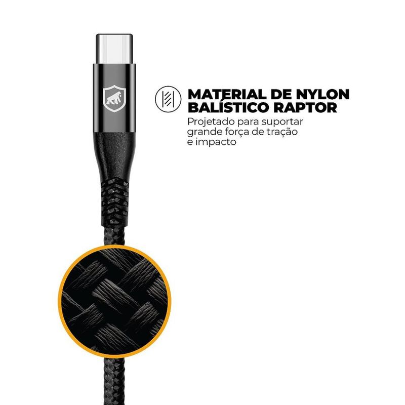 2) O Cabo Raptor da Gshield, é a escolha perfeita para usuários que buscam durabilidade, desempenho e proteção em um só produto. Fabricado em nylon balístico reforçado de alta qualidade, seu design foi desenvolvido para torná-lo resistente a dobras e torções, sendo capaz de suportar o desgaste do uso diário, garantindo uma vida útil prolongada. Equipado com chip inteligente, o Cabo Raptor oferece proteção contra múltiplas correntes, garantindo que seus dispositivos estejam sempre seguros enquanto carregam.