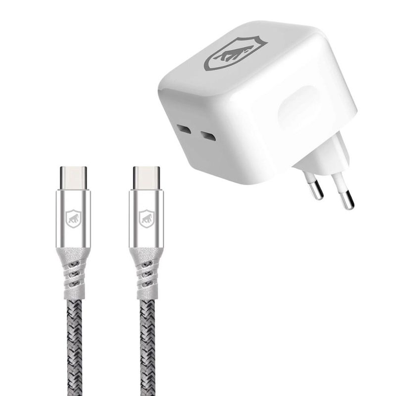 Carregador Turbo Duplo Tipo C + 2UN Cabo Dual Tech Tipo C / Tipo C - Branco - 1,8M - Gshield